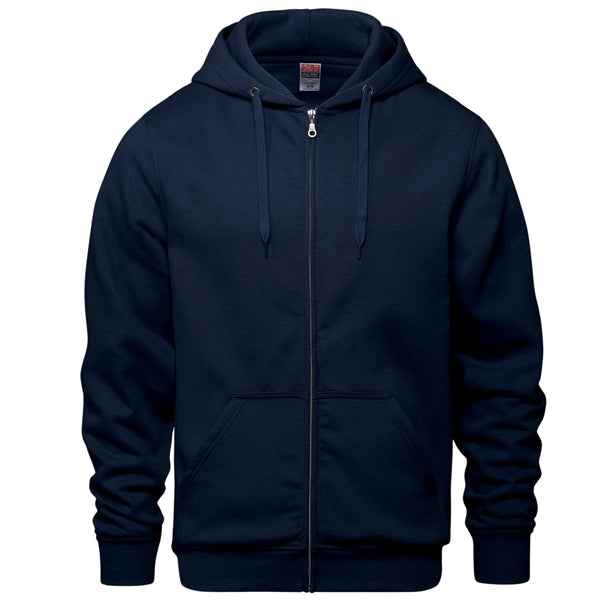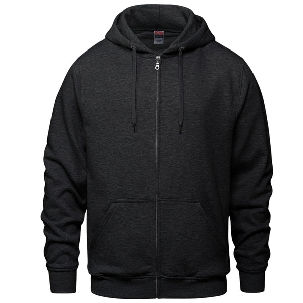 280 gsm - 8.3 oz./yd2 – 14 oz./lin. yd (solids) 70% cotton, 30% polyester fleece (heathers) 60% cotton, 40% polyester fleece. Self fabric lined hood with drawcord. Rib knit cuff and hem. Kangaroo pocket. YKK zipper.